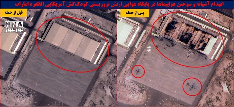 One of the strikes appears to have directly hit an aircraft shelter that is used to house American MQ-9 Reaper and MQ-4C Triton drones. pic.twitter.com/AyNoUzW4kA